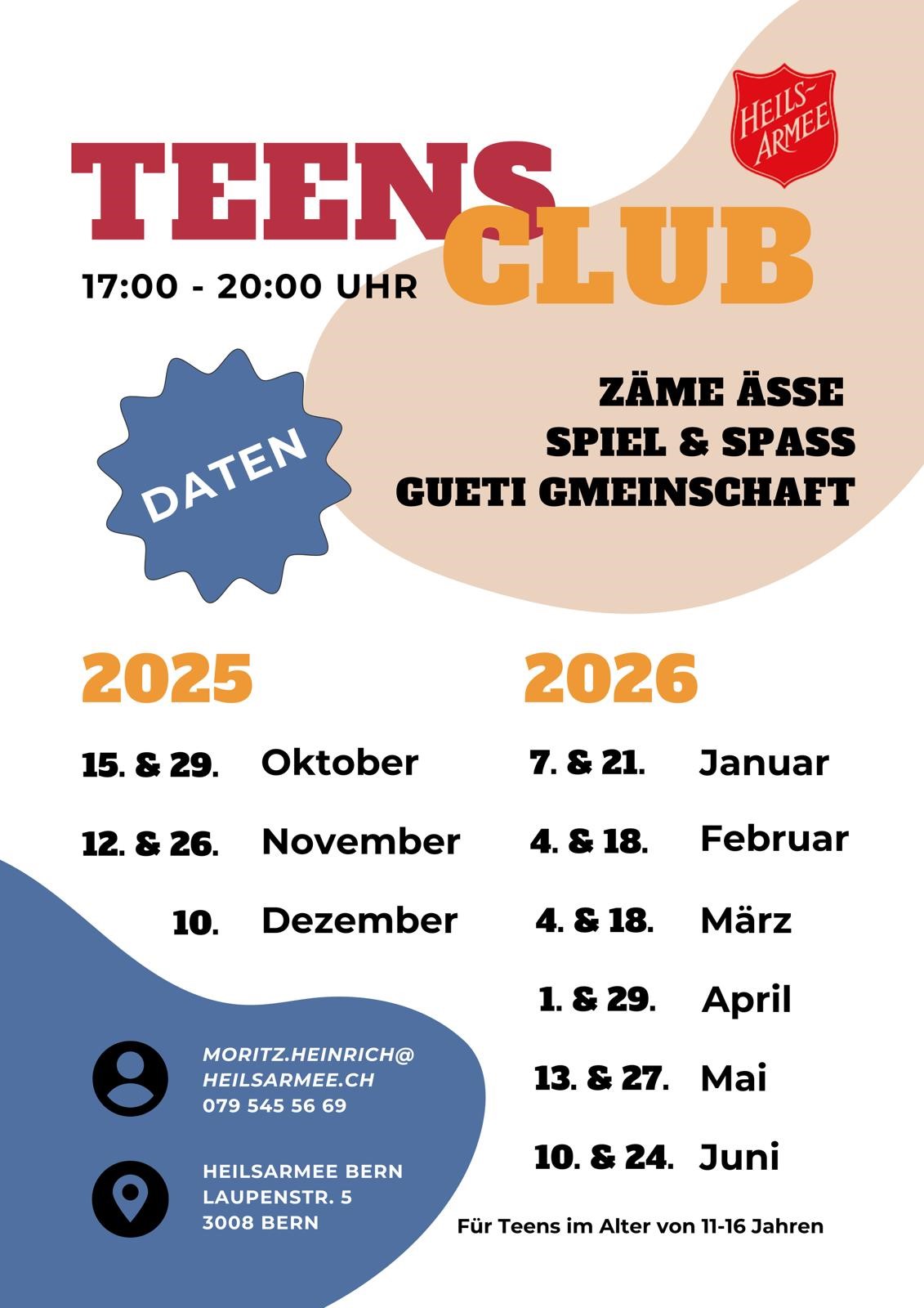 Wo: Heilsarmee Bern, Laupenstrasse 5, „PopCorner“ Jugendraum, Eingang im Hof.